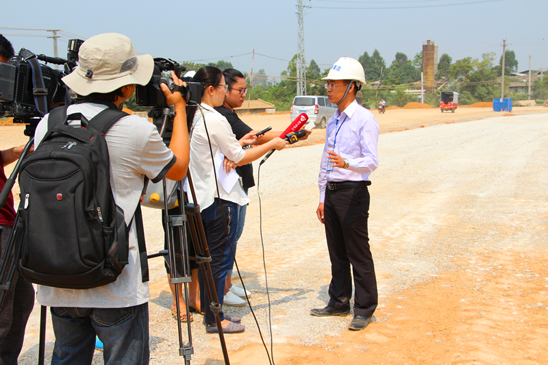 當天,綠港集團下屬子公司科巨公司市政三部經(jīng)理何俊接受了媒體記者的采訪。他介紹道,吳圩鎮(zhèn)光明路二期工程是南寧經(jīng)開區(qū)2016年的重點工程,項目總投資3.3億元,起點位于吳圩鎮(zhèn)壇么坡達尺江附近,終點止于吳圩鎮(zhèn)平山村,道路全長3580米。工程將把原縣道擴建為城市Ⅰ級主干道,建設項目主要包括道路、橋涵、排水、照明、綠化、交通工程等。道路建成通車后將進一步加強南寧市區(qū)與吳圩鎮(zhèn)、空港物流園、明陽工業(yè)園區(qū)的交通聯(lián)系,對于完善城市基礎設施,改善區(qū)域交通出行條件,促進沿線區(qū)域開發(fā)建設和社會經(jīng)濟發(fā)展具有重要意義。