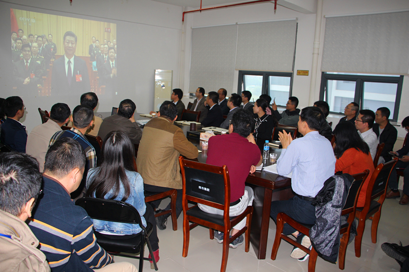 金秋十月,南國綠城花正艷。10月18日,黨的十九大在北京勝利開幕。當(dāng)日上午9時(shí),綠港集團(tuán)黨委組織集團(tuán)公司領(lǐng)導(dǎo)班子全體成員、董事長助理、總經(jīng)理助理,各部門、各子公司負(fù)責(zé)人及公司全體黨員,在麗匯大廈415會(huì)議室集中收看中國共產(chǎn)黨第十九次全國代表大會(huì)開幕會(huì)直播盛況。全體與會(huì)人員懷著無比激動(dòng)的心情,聚精會(huì)神,靜靜聆聽,認(rèn)真記錄,不時(shí)爆發(fā)出熱烈的掌聲!在長達(dá)三個(gè)半小時(shí)的收看過程中,整個(gè)會(huì)場(chǎng)始終保持莊嚴(yán)、肅穆、緊張、熱烈的良好氛圍。