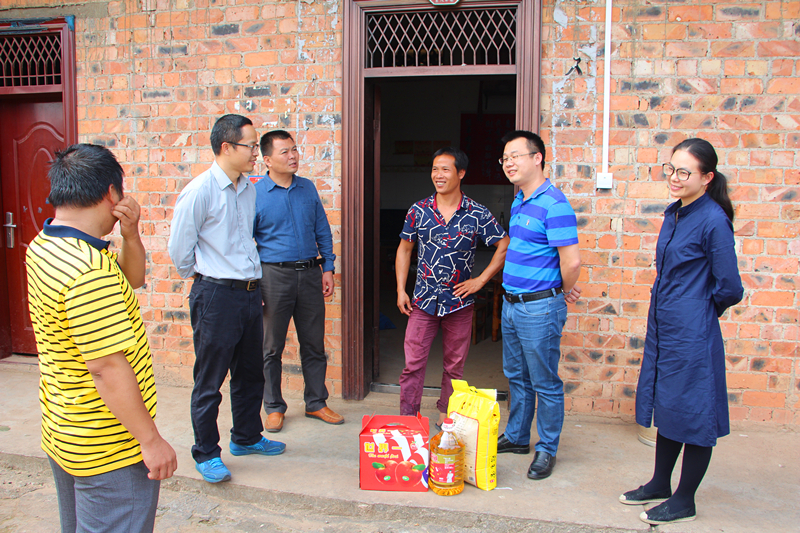 座談會結(jié)束后,在那樓鎮(zhèn)陸文威書記的陪同下,龔國強董事長一行先后來到貧困戶盧創(chuàng)興和梁蔭坎家里開展入戶慰問工作。在盧創(chuàng)興家里,龔董事長緊緊握住盧創(chuàng)興老人的手,詳細地了解盧創(chuàng)興家庭情況,當了解到盧創(chuàng)興家通過轉(zhuǎn)移勞動力的方式,增加創(chuàng)收途徑,實現(xiàn)脫貧的時候,龔董事長頻頻點頭。在貧困戶梁蔭坎家里,董事長了解到他通過發(fā)展種養(yǎng),憑著農(nóng)村人樸實無華的特質(zhì),種養(yǎng)產(chǎn)品不僅獲得豐收且供不應(yīng)求的時候,董事長給他豎起了大拇指,鼓勵他繼續(xù)擴大生產(chǎn)規(guī)模,早日實現(xiàn)小康生活。調(diào)研組一行還向兩戶貧苦戶送上了慰問品。