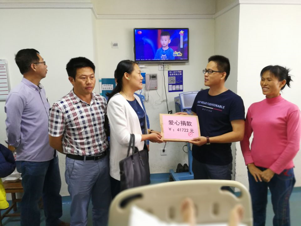 吳海召激動地說:“善款有價,愛心無價。綠港集團和經(jīng)開區(qū)的捐款正體現(xiàn)中華民族團結(jié)互助的精神和無私博愛的優(yōu)良傳統(tǒng),非常感謝所有愛心人士的熱情幫助”。蒙福東副總經(jīng)理讓家屬們增強信心,安心照顧好吳海有,有困難及時告知公司,綠港集團一定盡力協(xié)調(diào)解決,能幫就幫。