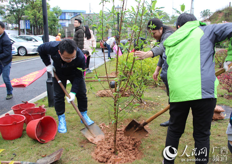人民網(wǎng)南寧3月11日電 陽春三月,萬物復(fù)蘇,生機勃發(fā)。3月9日,細雨紛飛,春寒料峭,但是南寧經(jīng)開區(qū)的綠港·國際中心卻人潮涌動,愛意濃濃。原來,南寧綠港集團正在舉行“情暖童心·攜手植綠”學雷鋒志愿服務(wù)月活動,200多名職工和家屬一起參加了當天的愛心義賣、愛心捐贈和義務(wù)植樹活動。