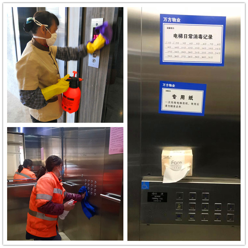 防疫物資到位后,萬方公司于1月30日及時安排人員將物資下發(fā)到各服務項目,同時在接管的綠港·國際中心、麗匯工業(yè)園、創(chuàng)意產(chǎn)業(yè)園、金凱工業(yè)園、銀凱孵化園、宏象工業(yè)園、現(xiàn)代工業(yè)園、吳圩新港家園等10余個項目全面開展疫情防控工作。由各項目主任帶頭領(lǐng)導,多措并舉防控疫情。首先,對公廁、下水道、單元樓道、垃圾桶、綠植等容易滋生病菌的場所進行消毒,重點對人員接觸頻繁的電梯、公共通道的門把手、開關(guān)、按鍵、健身器材等位置進行每日1-2次的消毒滅菌工作。其次,嚴格落實園區(qū)進出人員及車輛的管理和登記,共在各園區(qū)設置定點體溫檢測10處,嚴格開展入園人員體溫檢測,并進行體溫異常人員登記,除現(xiàn)場進行體溫檢測外,還在萬方公眾號小程序上推送各種防疫工作溫馨提示,提醒業(yè)主注意防疫措施并配合體溫監(jiān)測。再次,設置廢棄口罩回收點30個(每個園區(qū)視項目情況配2-3個點),回收廢棄口罩,防止病毒逸散。最后,深入園區(qū),做好業(yè)主和群眾的疫情防治宣傳,在各園區(qū)共懸掛疫情防控宣傳橫幅50條,將防護知識傳播到各家各戶,降低恐慌,為共同保障園區(qū)環(huán)境奠定良好的群眾基礎(chǔ)。