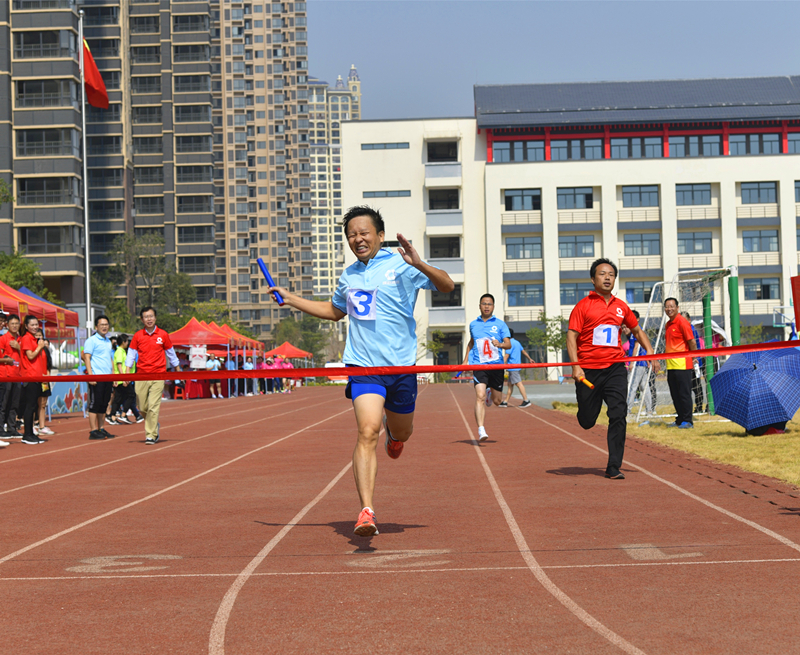 《向前沖!》(集團(tuán)辦公室 吳靄濤)圖片說明:2019年職工運(yùn)動(dòng)會(huì)上,接力比賽隊(duì)員正在全力沖刺終點(diǎn)。