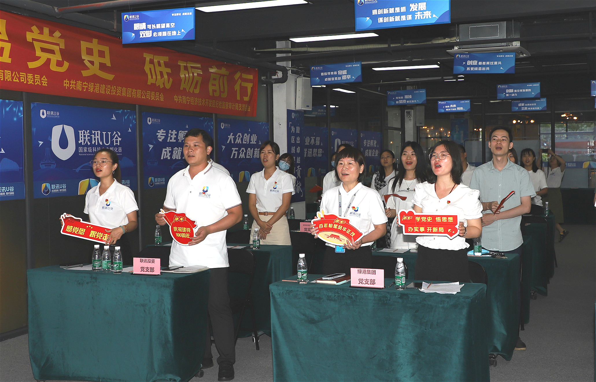 為慶祝建黨100周年,繼承和發(fā)揚(yáng)黨的優(yōu)良傳統(tǒng)和作風(fēng),扎實(shí)推進(jìn)黨史學(xué)習(xí)教育,推動(dòng)學(xué)習(xí)教育走深走實(shí),5月26日,綠港集團(tuán)黨委、廣西聯(lián)訊黨委、南寧經(jīng)開區(qū)紀(jì)檢監(jiān)察審計(jì)局黨支部聯(lián)合舉辦“重溫黨史 砥礪前行”主題黨建共建活動(dòng),綠港集團(tuán)、廣西聯(lián)訊、南寧經(jīng)開區(qū)紀(jì)檢監(jiān)察審計(jì)局的黨員代表、發(fā)展對(duì)象、入黨積極分子共35人參加了活動(dòng)。