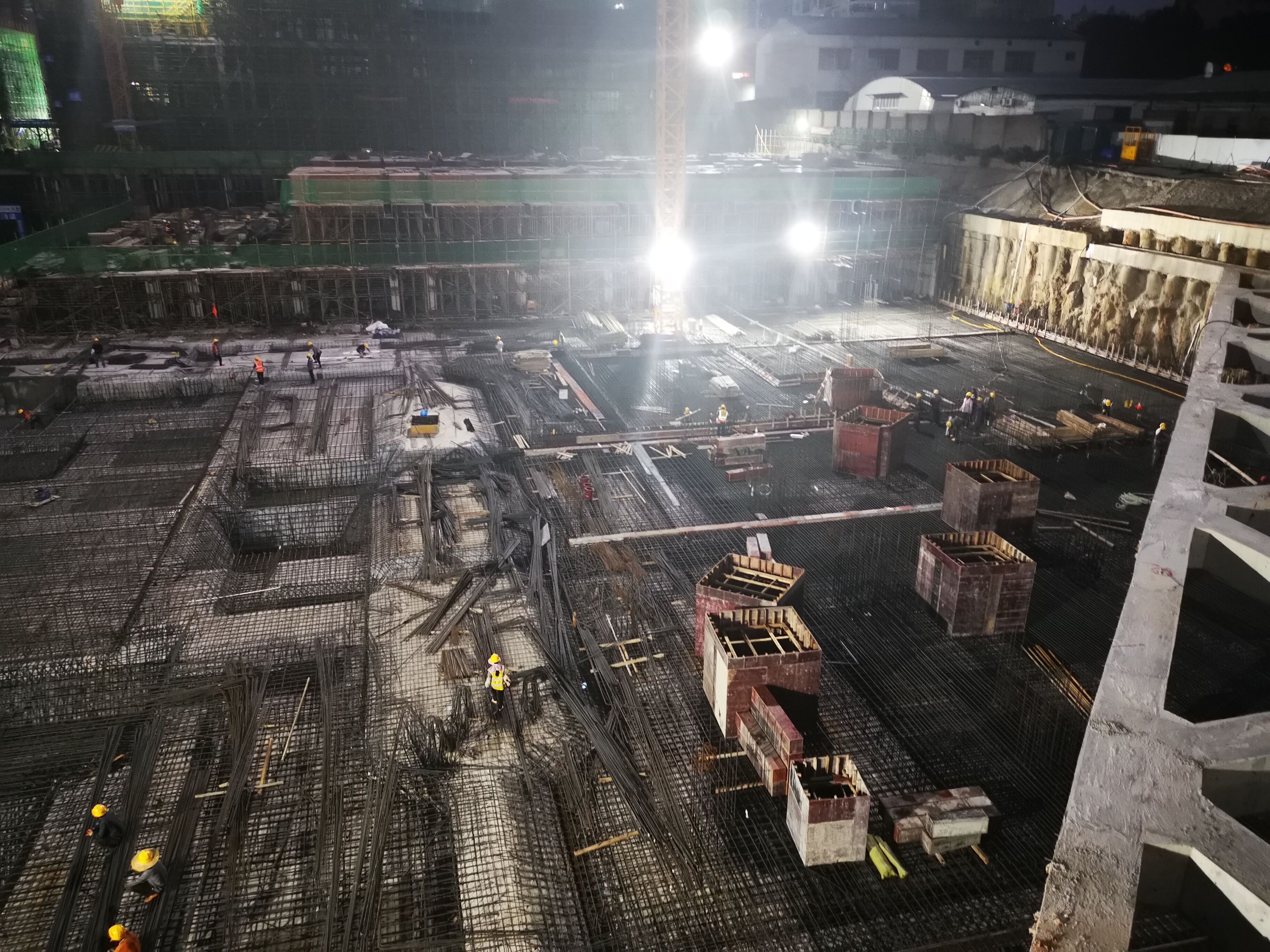 在完成支護樁施工及土方外運工作后,接下來就是緊張的基礎(chǔ)及地下室施工,在剩下不到40天的時間里完成兩層地下室施工,這是一場與時間賽跑的大戰(zhàn)。推進小組全體成員頂住壓力,緊盯5月31日預售節(jié)點目標,開足馬力全力推進項目建設(shè)加速跑。推進小組實行每天碰頭會,每周安全生產(chǎn)推進會,按照工期節(jié)點倒排施工計劃,層層細化每日施工任務(wù),持續(xù)加強內(nèi)外溝通。依據(jù)工程進展情況,督促施工單位同時展開多個作業(yè)面,增加施工人員及機械設(shè)備的投入,采取倒班等措施搶回時間,保證施工現(xiàn)場做到“見縫插針、動態(tài)管控”。經(jīng)過項目推進小組及參建各方2個多月的日夜奮戰(zhàn),項目8#、6#樓于4月12日、5月13日提前完成主體結(jié)構(gòu)封頂;3#樓5月27日提前完成±0.00層達到預售節(jié)點;在臨時增加工程量的情況下, 1#樓于6月5日完成集團公司設(shè)定的項目預售節(jié)點攻堅目標。