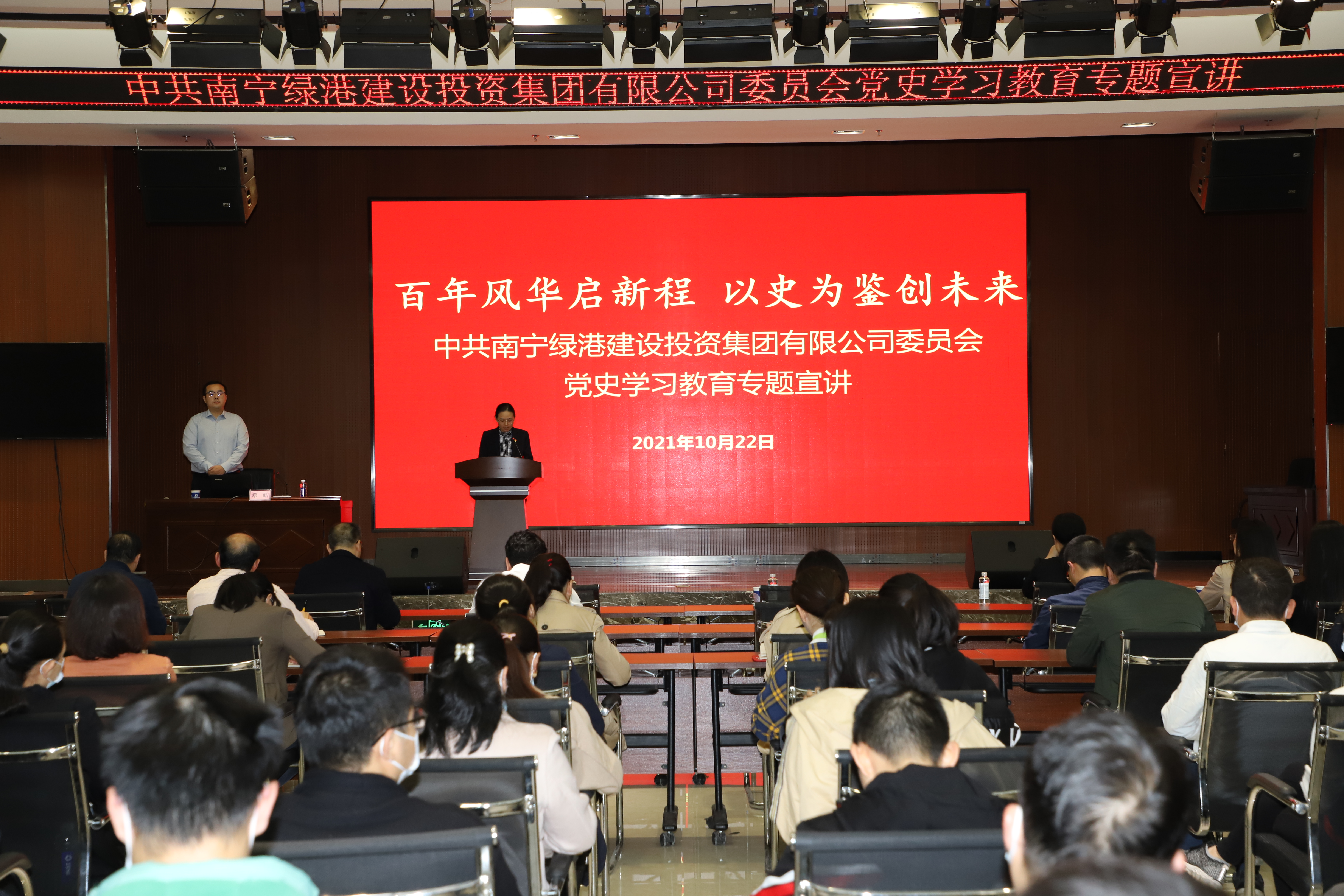 為持續(xù)推進(jìn)黨史學(xué)習(xí)教育走深走實(shí),讓廣大黨員干部更加深入理解習(xí)近平總書記在慶祝中國(guó)共產(chǎn)黨成立100周年大會(huì)上的重要精神,10月22日,綠港集團(tuán)黨委舉辦學(xué)習(xí)貫徹習(xí)近平總書記“七一”重要講話精神專題宣講會(huì)。此宣講會(huì)由集團(tuán)黨委委員、副總經(jīng)理、工會(huì)主席陸羿冰主持。集團(tuán)公司全體黨員、預(yù)備黨員、積極分子約150人參加宣講會(huì)。
