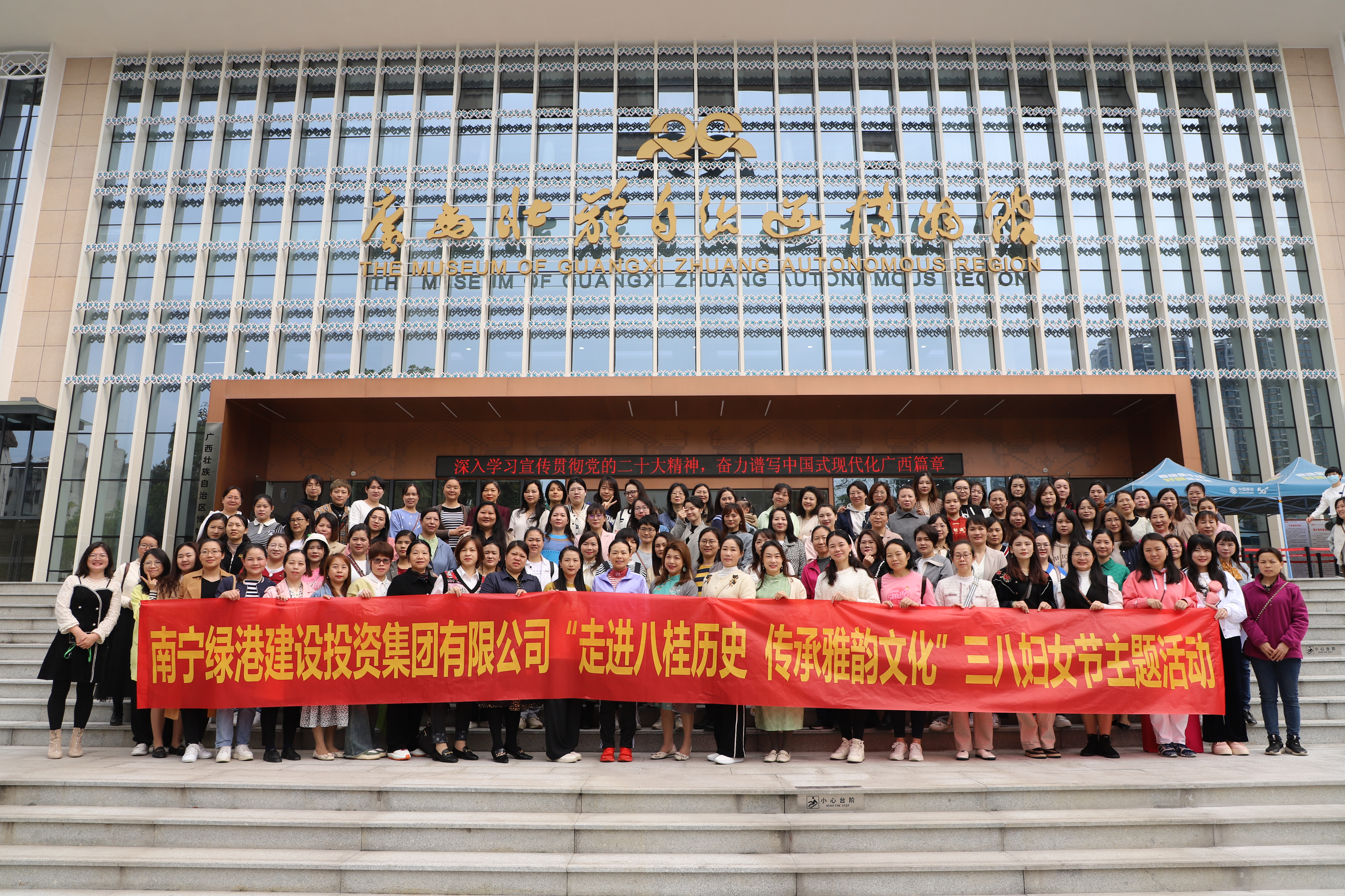 陽(yáng)春三月,春暖花開(kāi)。在“三八”國(guó)際婦女節(jié)到來(lái)之際,為讓綠港女性干部職工感受民族文化的魅力,了解廣西民族濃厚的歷史文化內(nèi)涵及藝術(shù)作品的獨(dú)特魅力,陶冶藝術(shù)情操、增加生活樂(lè)趣。3月8日,綠港集團(tuán)開(kāi)展“三八”國(guó)際婦女節(jié)主題活動(dòng),組織女職工到廣西博物館、民族文物苑進(jìn)行參觀游覽。集團(tuán)黨委委員、副總經(jīng)理、工會(huì)主席陸羿冰,集團(tuán)黨委委員、副總經(jīng)理黃麗琴,集團(tuán)副總經(jīng)理、財(cái)務(wù)總監(jiān)關(guān)月娥出席活動(dòng)。綠港集團(tuán)全體管理崗位女職工約150人參加。