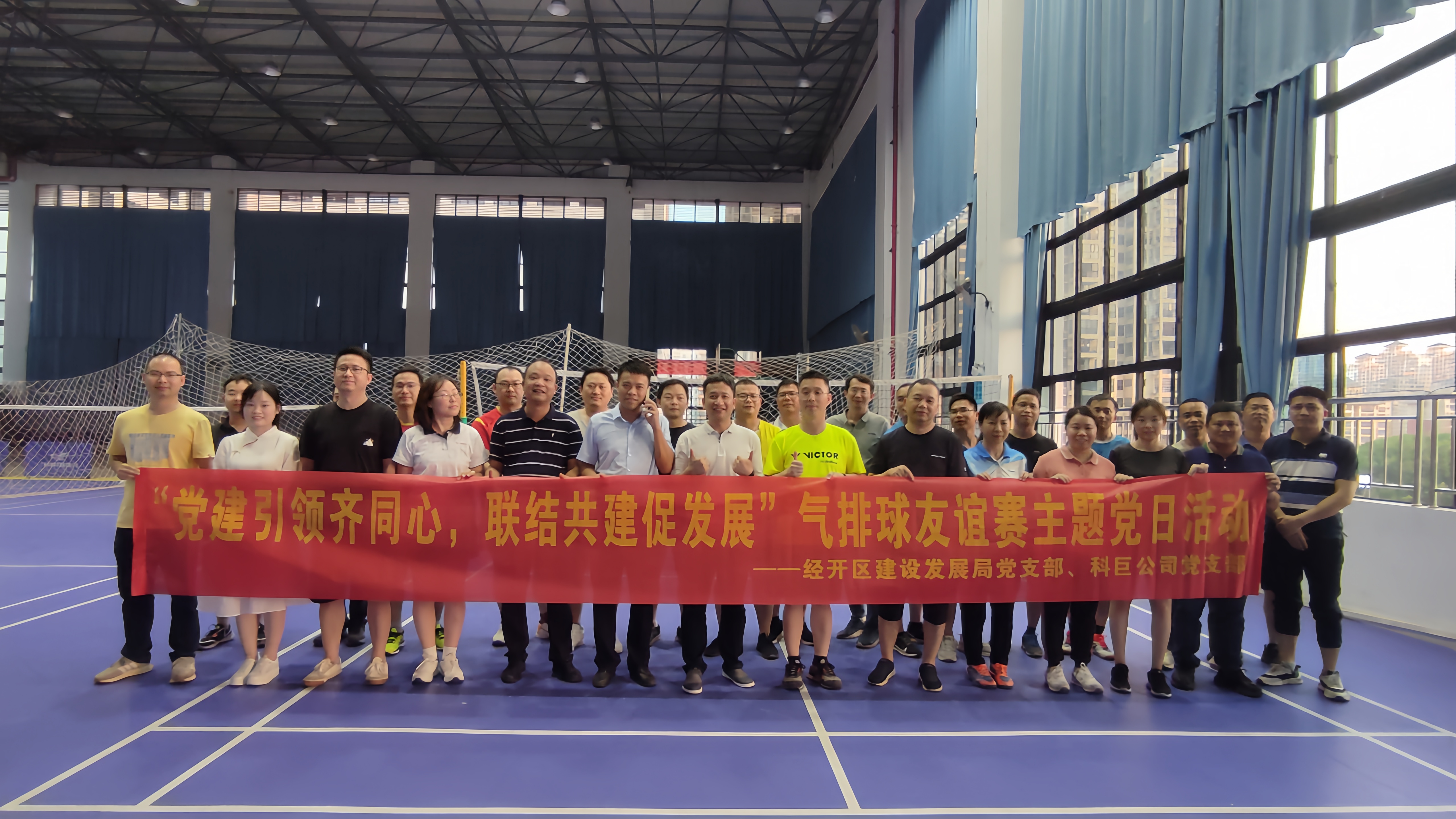 “今晚的友誼賽打得真是酣暢淋漓!”隊員們賽后仍然意猶未盡。5月30日,為進(jìn)一步增強(qiáng)黨支部之間的交流,科巨公司黨支部與經(jīng)開區(qū)建設(shè)發(fā)展局黨支部在綠港·歡樂里魚悅體育館開展了一場熱情洋溢、精彩紛呈的“黨建引領(lǐng)齊同心,聯(lián)結(jié)共建促發(fā)展”氣排球友誼賽主題黨日活動,以黨建為契機(jī),揮灑運(yùn)動汗水,點(diǎn)燃夏日激情,強(qiáng)化政企溝通,增進(jìn)政企共識,攜手共建經(jīng)開新篇章!
