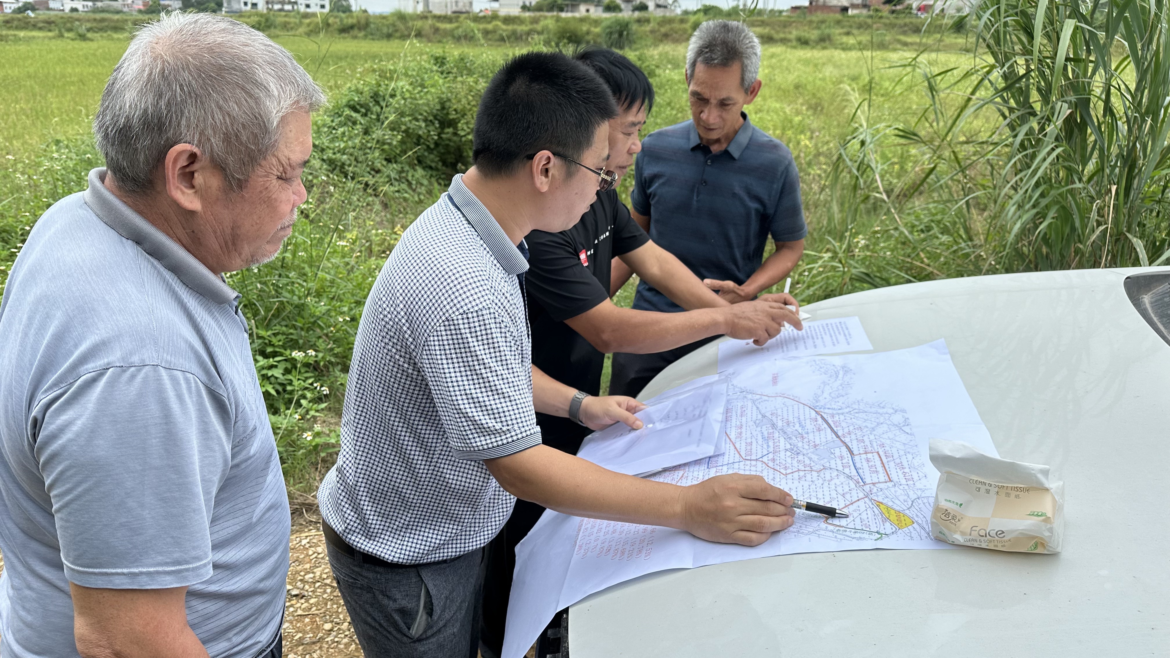 吳圩鎮(zhèn)平垌村旱改水項目分田到戶工作第一階段也是最關鍵的階段,是將經過旱改水改造后的土地合理地分配至各生產隊,地塊的遠近、土質的肥瘦、水源的豐缺等條件都需要在分配時充分進行考慮,如何科學、合理、精準地實現土地分配,最大限度照顧各方利益,需要大量的實地溝通與協(xié)調。科巨公司結合以往旱改水田地分配經驗,緊鑼密鼓地開展分地工作。
