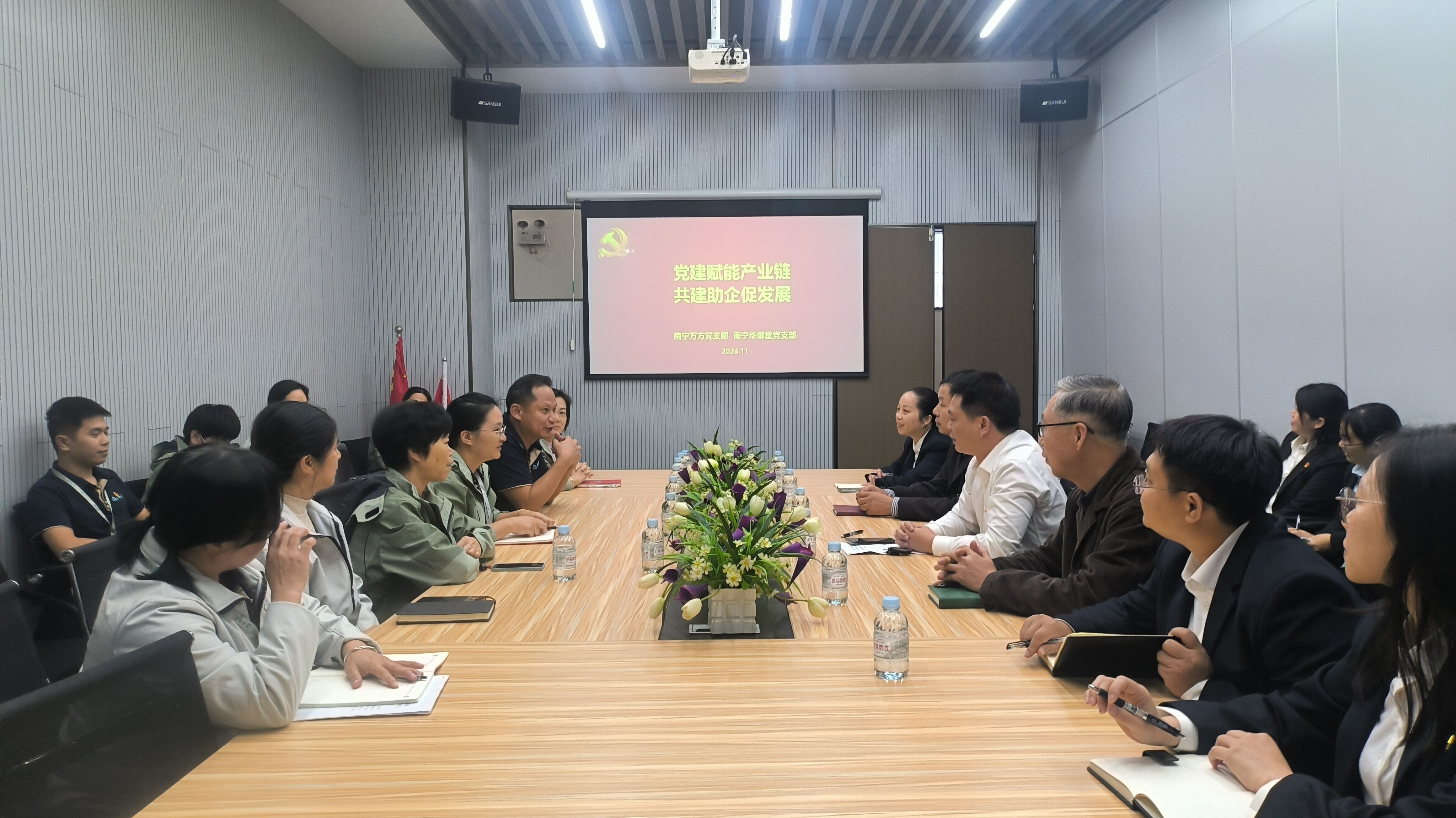 萬方公司黨支部全體黨員來到位于金凱工業(yè)園的華御堂公司,首先參觀了華御堂公司的工作區(qū),了解公司基本經(jīng)營情況。隨后雙方進行了座談,就支部黨建工作、公司經(jīng)營工作、服務訴求等方面展開交流。華御堂公司的黨員們高度肯定了萬方公司所提供的優(yōu)質服務,并對安全培訓、服務優(yōu)化等方面提出了中肯的建議。萬方公司副總經(jīng)理覃富文表示,華御堂公司是生產(chǎn)經(jīng)營企業(yè),萬方公司是物業(yè)服務企業(yè),均是產(chǎn)業(yè)鏈中重要一環(huán),雙方進行經(jīng)驗交流、信息溝通及相互了解需求有助于促進公司的高質量發(fā)展。雙方就今后進行客戶信息、資源共享達成共識,決定建立常態(tài)化的溝通機制,以相對固定的形式開展支部共建聯(lián)建活動,共同致力于提高物業(yè)服務水平,推動企業(yè)發(fā)展。最后雙方進行了氣排球友誼賽,兩個黨支部的黨員、入黨積極分子熱情參與、激烈角逐,充分體現(xiàn)出雙方團結拼搏、奮勇爭先的精神風貌。雙方通過比賽加深了彼此間的了解和友誼,為雙方繼續(xù)深化黨建交流、加強業(yè)務合作奠定了良好基礎。