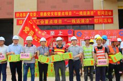 - 6月19日下午,集團(tuán)黨委書記、董事長(zhǎng)、總經(jīng)理龔國(guó)強(qiáng)帶領(lǐng)集團(tuán)領(lǐng)導(dǎo)班子,頂著烈日、迎著熱浪,來(lái)到集團(tuán)重點(diǎn)項(xiàng)目——瑞聲科技(南寧)廠房裝修工程(二期)施工現(xiàn)場(chǎng),親切慰問看望在炎炎夏日中奮戰(zhàn)在項(xiàng)目建設(shè)一線的“黨員先鋒隊(duì)”、“青年突擊隊(duì)”隊(duì)員及各施工班組的建設(shè)者,送去了集團(tuán)黨委、集團(tuán)工會(huì)和榮鑫公司黨支部的關(guān)心和敬意,為他們加油鼓勁、提振士氣。